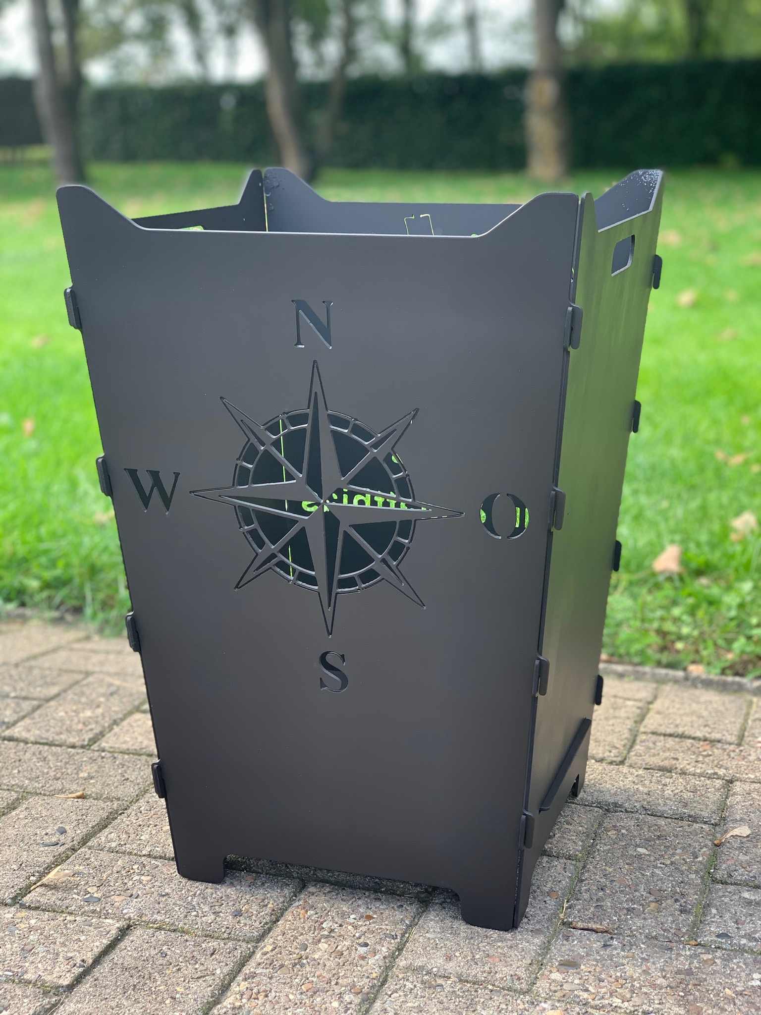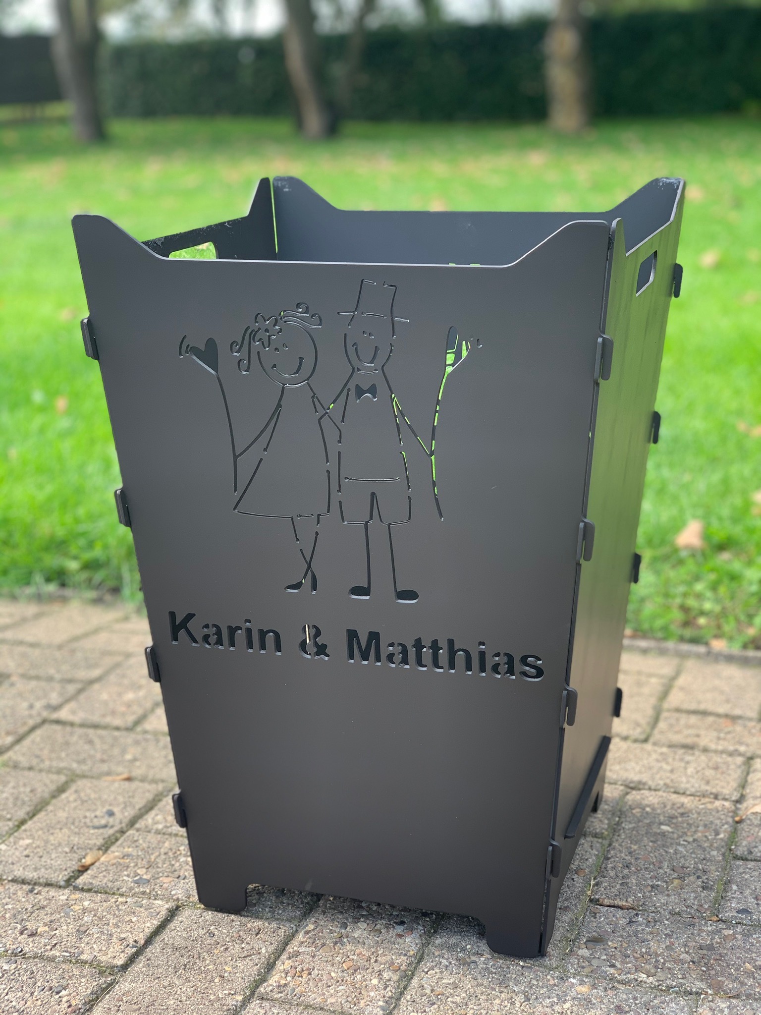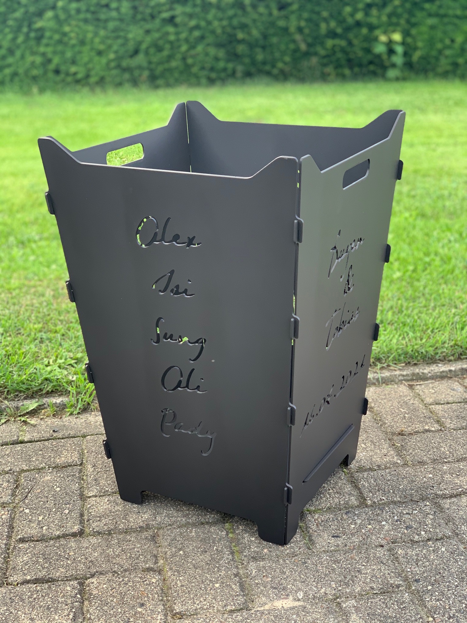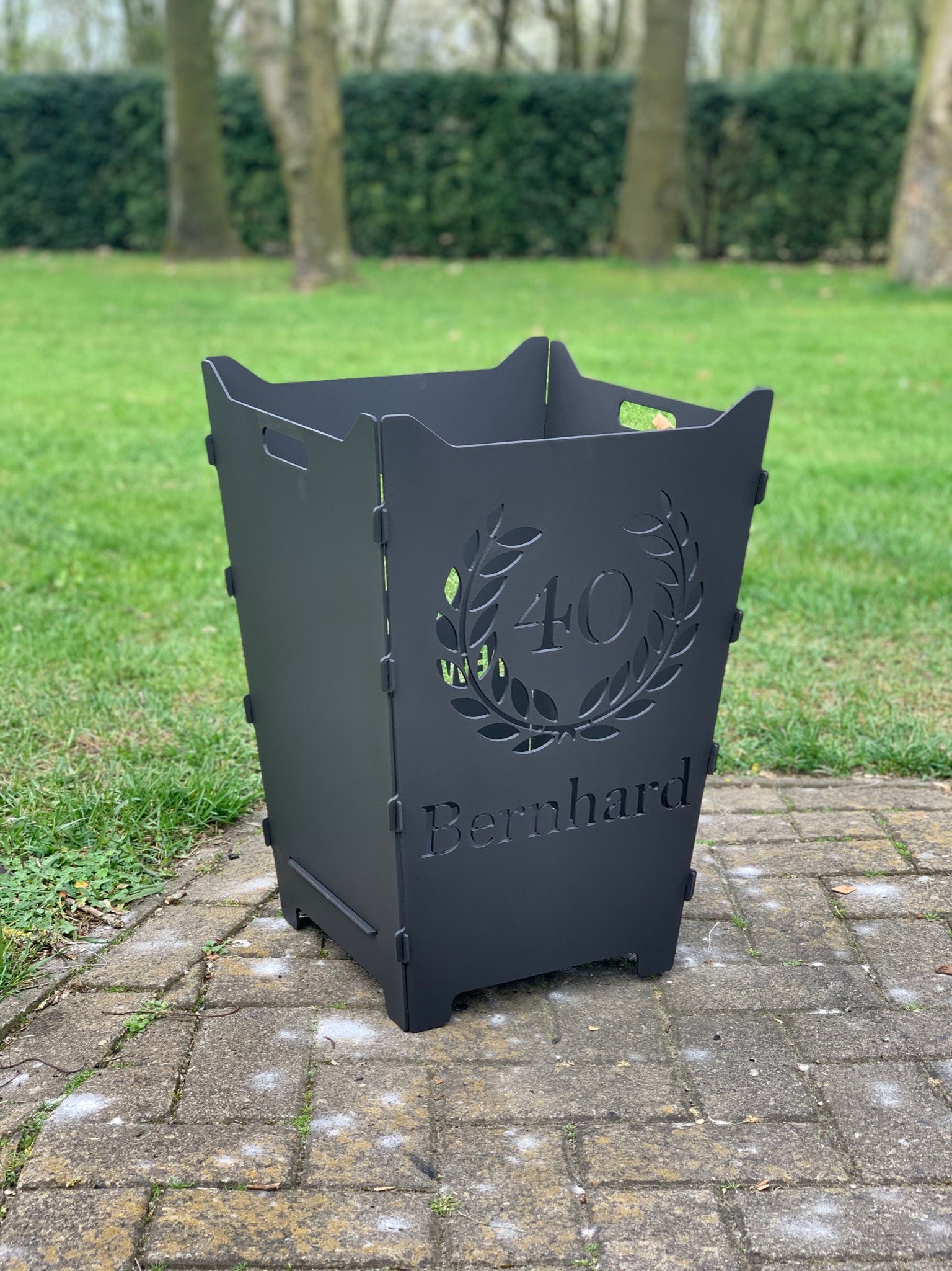 Hier findet ihr steckbare Feuerkörbe mit individuellen Logos, Schriften oder Grafiken.