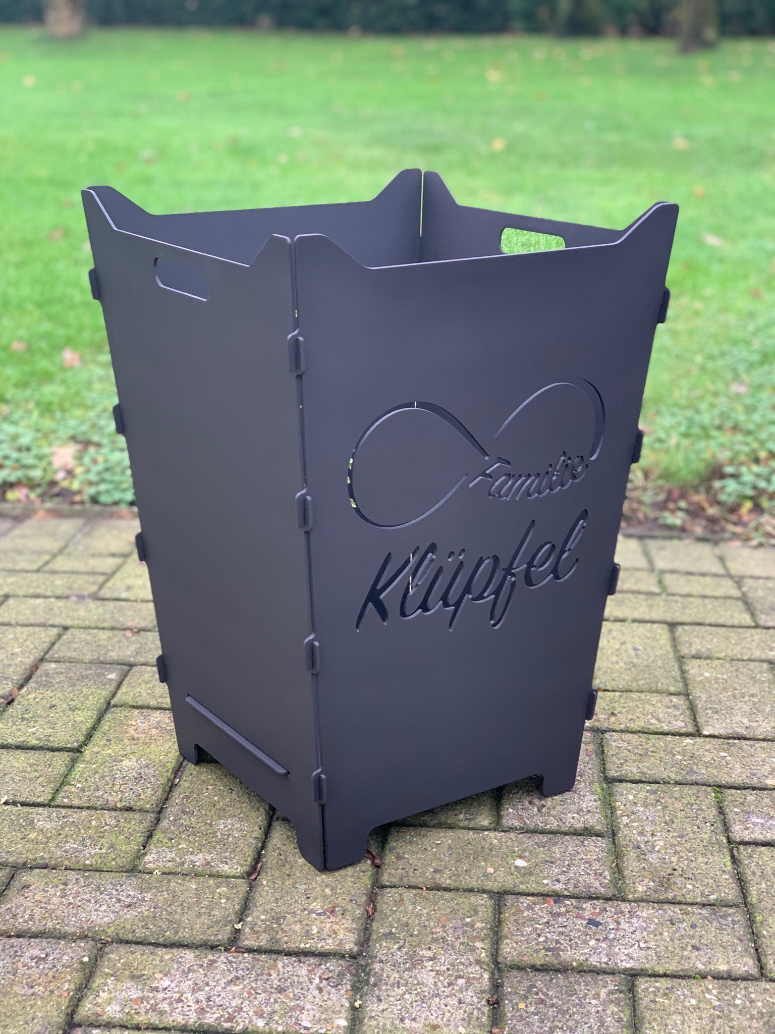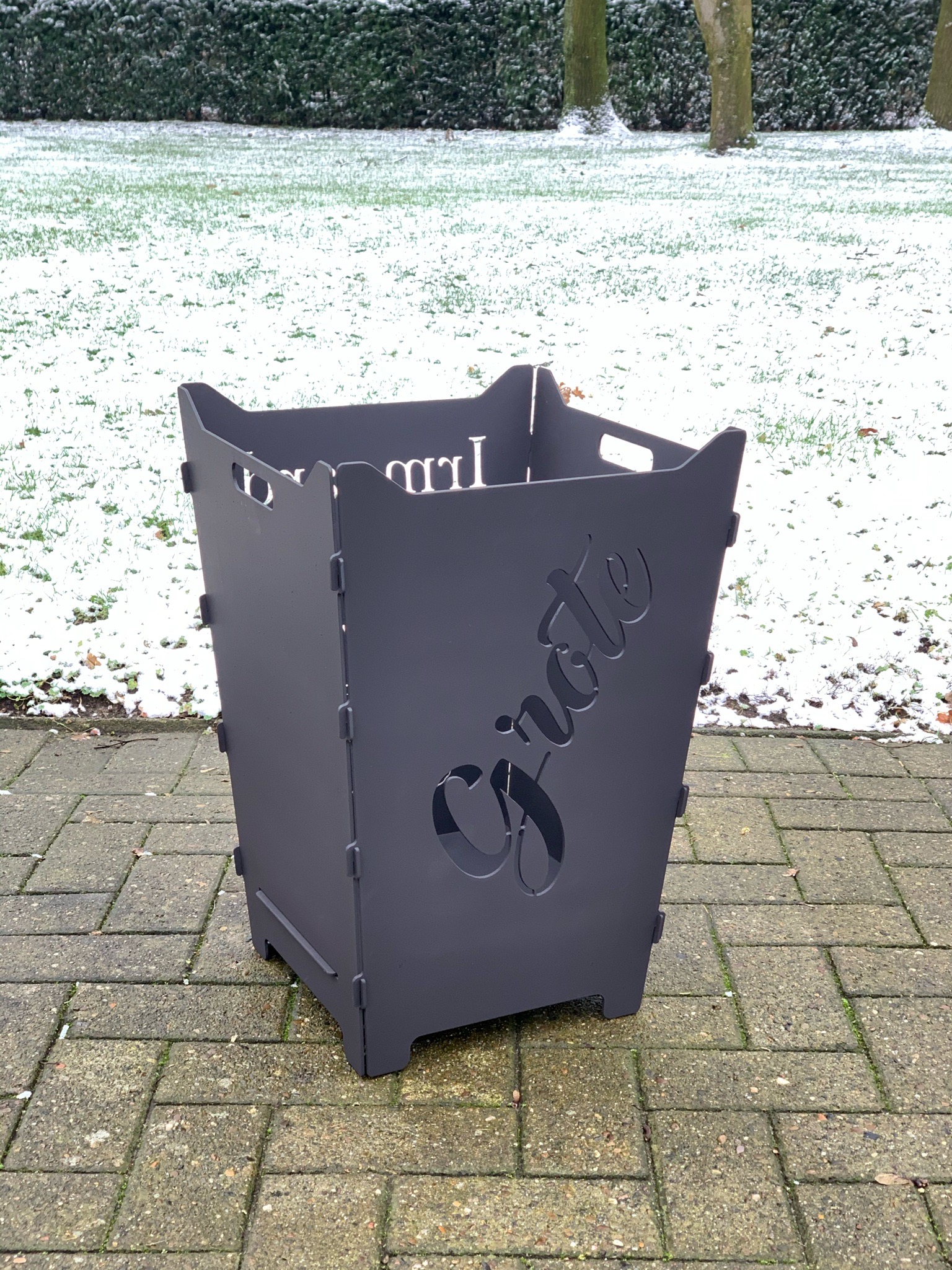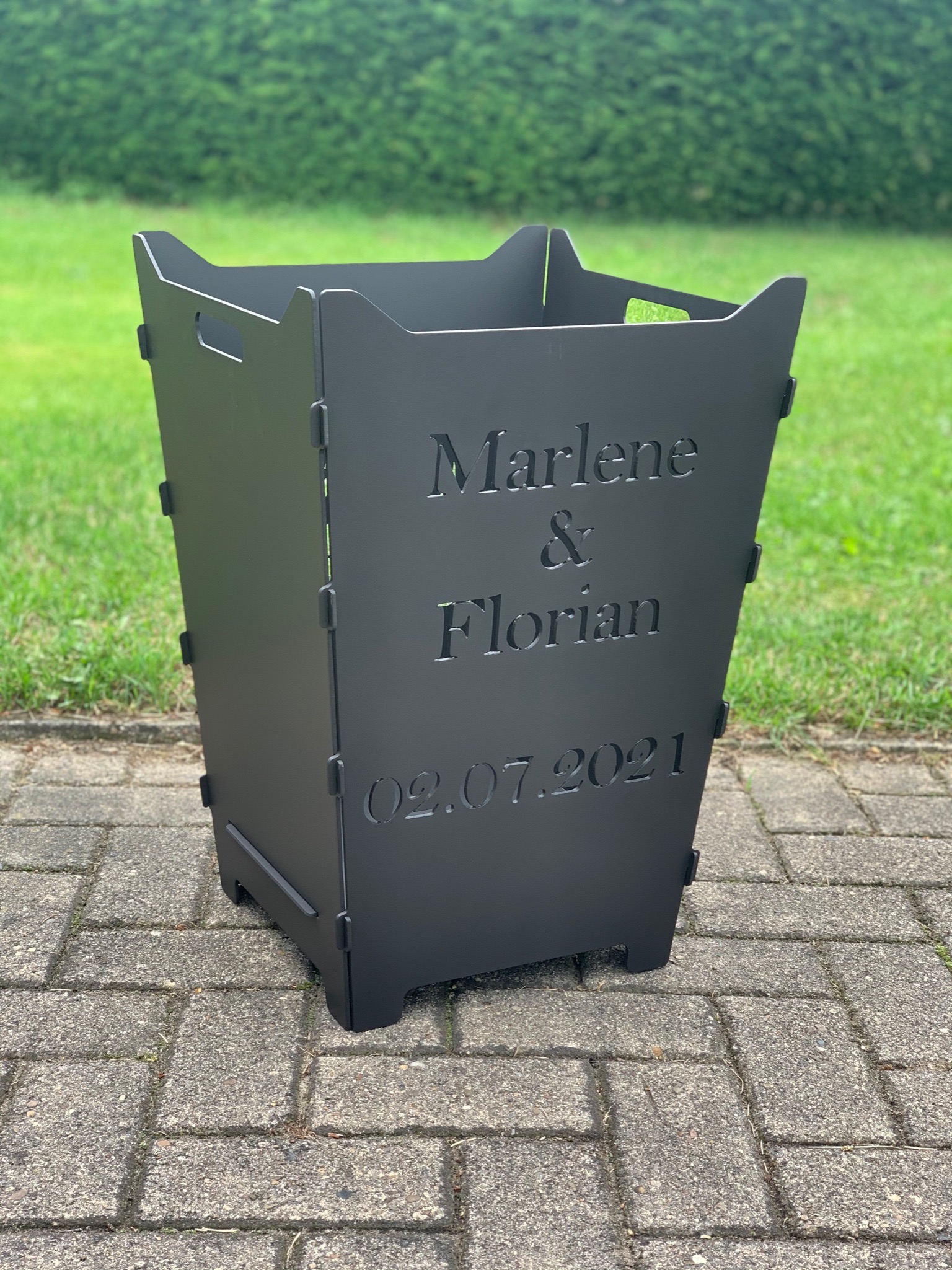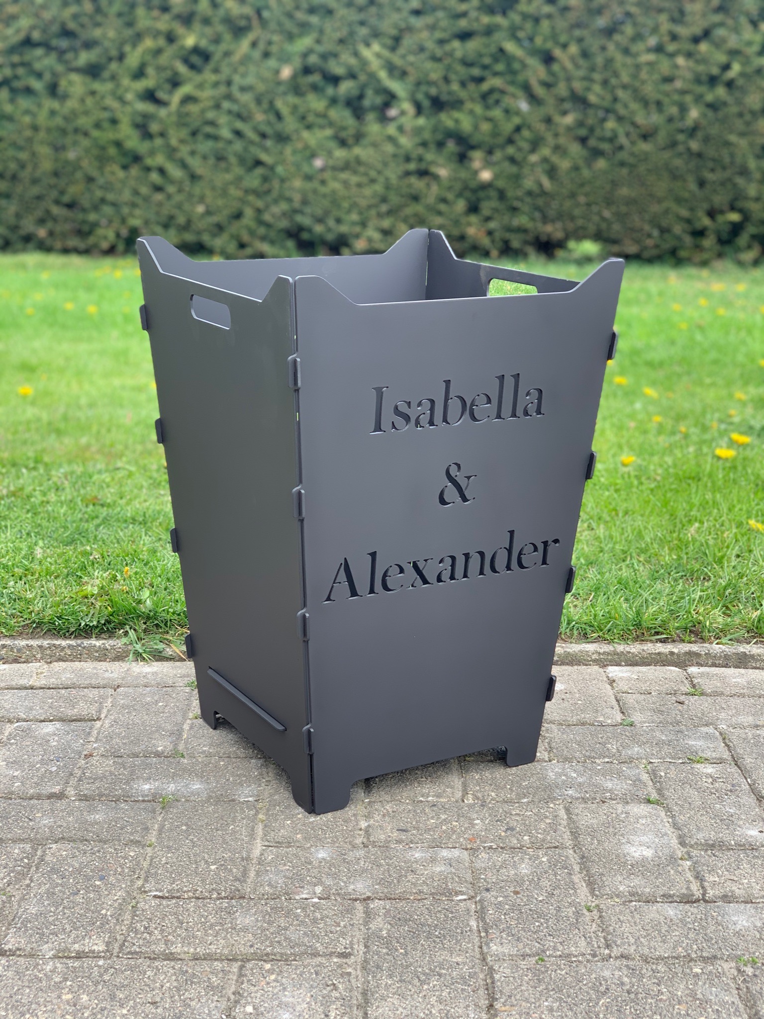 Hier findet ihr steckbare Feuerkörbe mit individuellen Logos, Schriften oder Grafiken.
