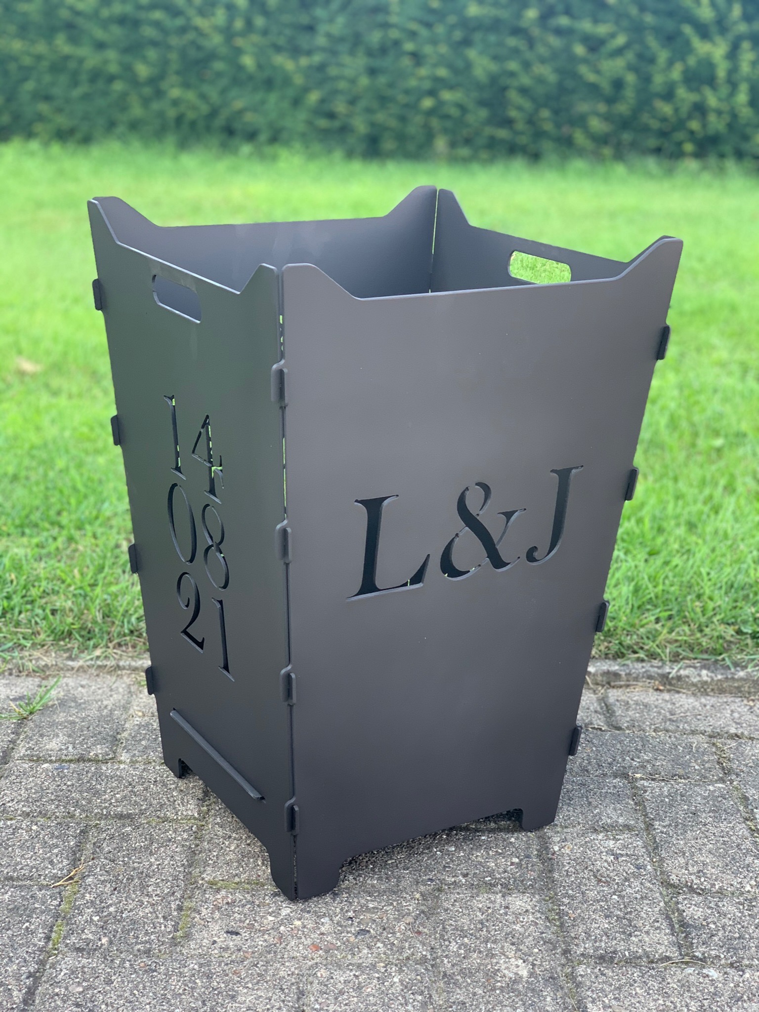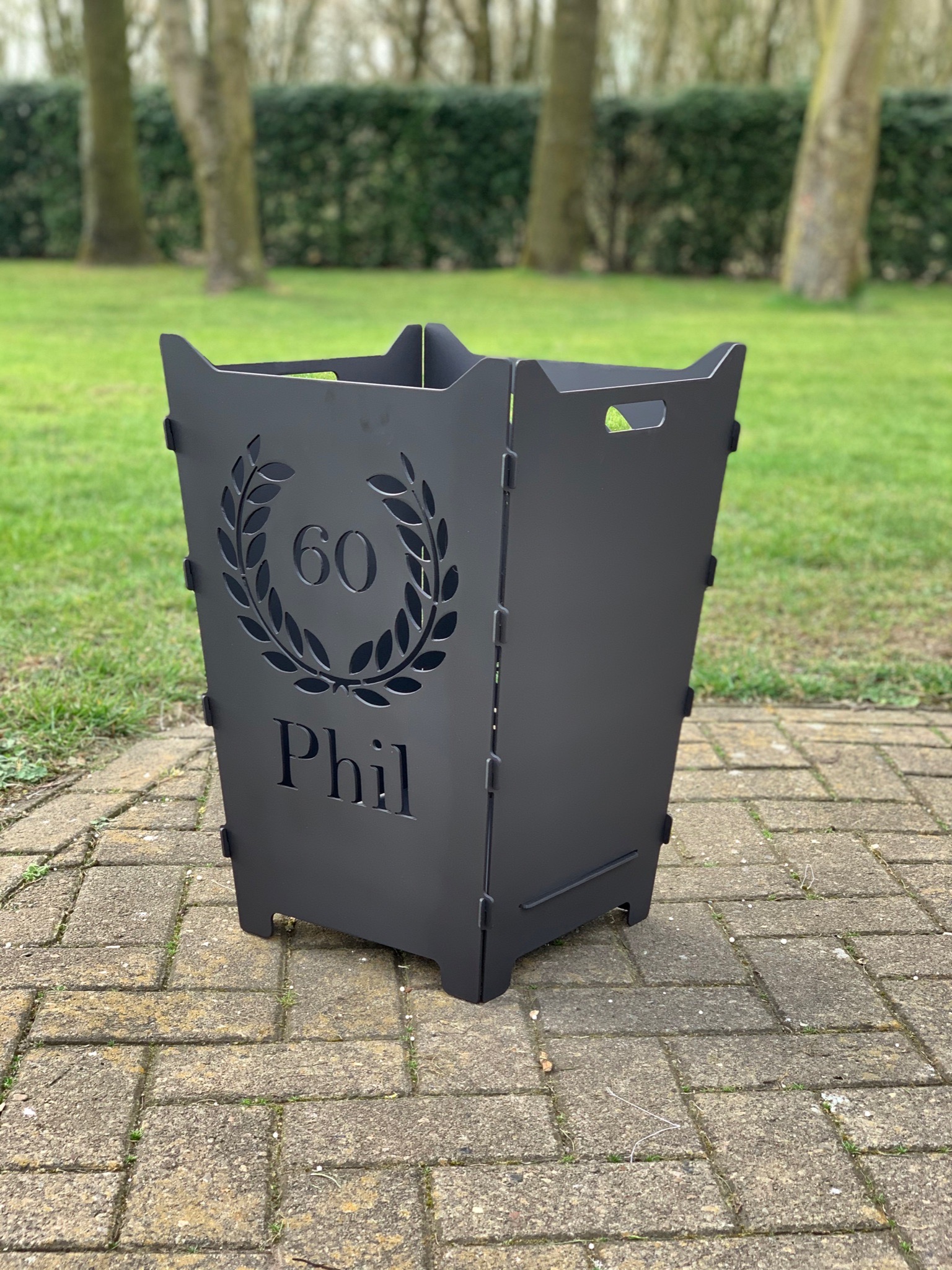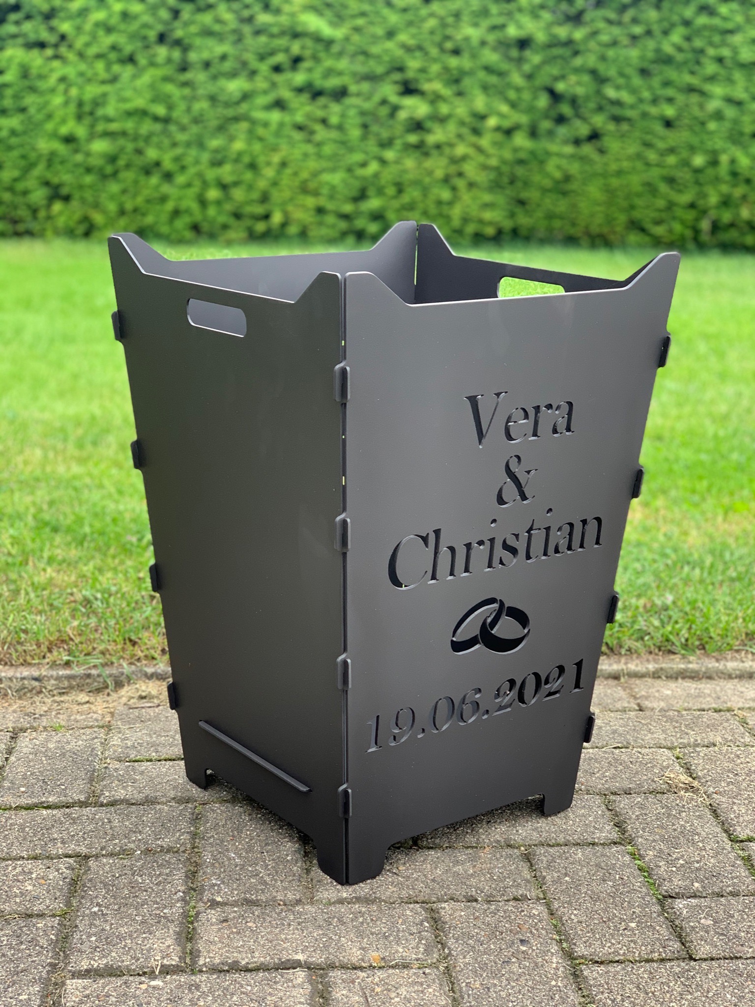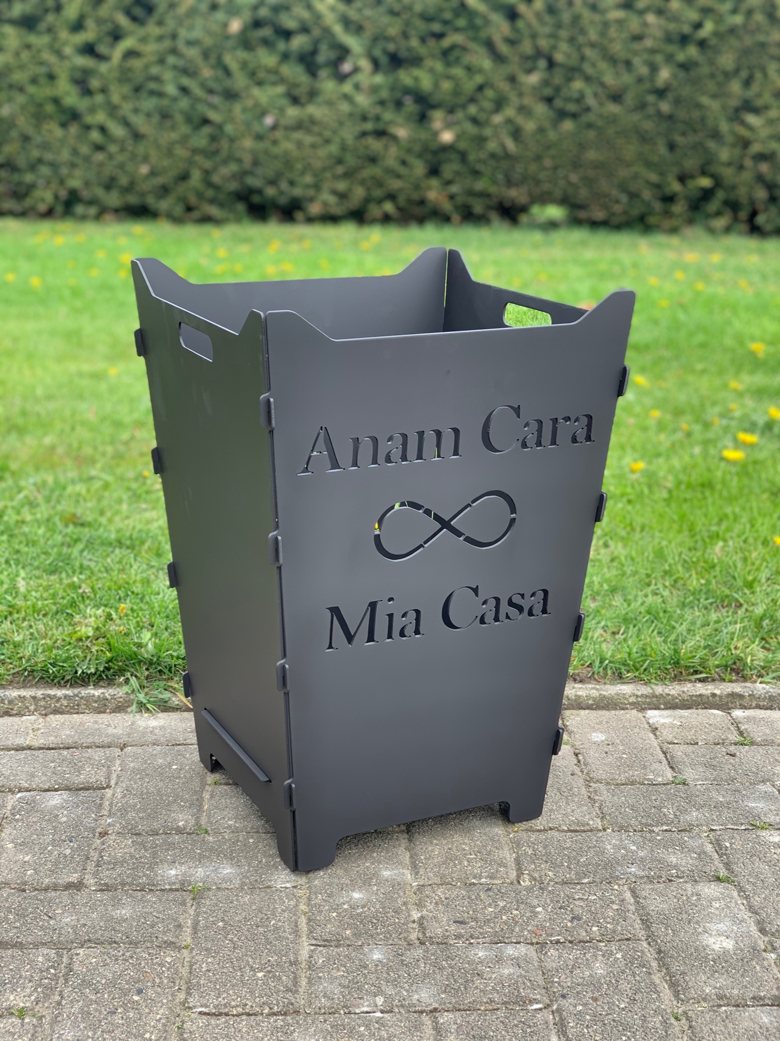 Hier findet ihr steckbare Feuerkörbe mit individuellen Logos, Schriften oder Grafiken.