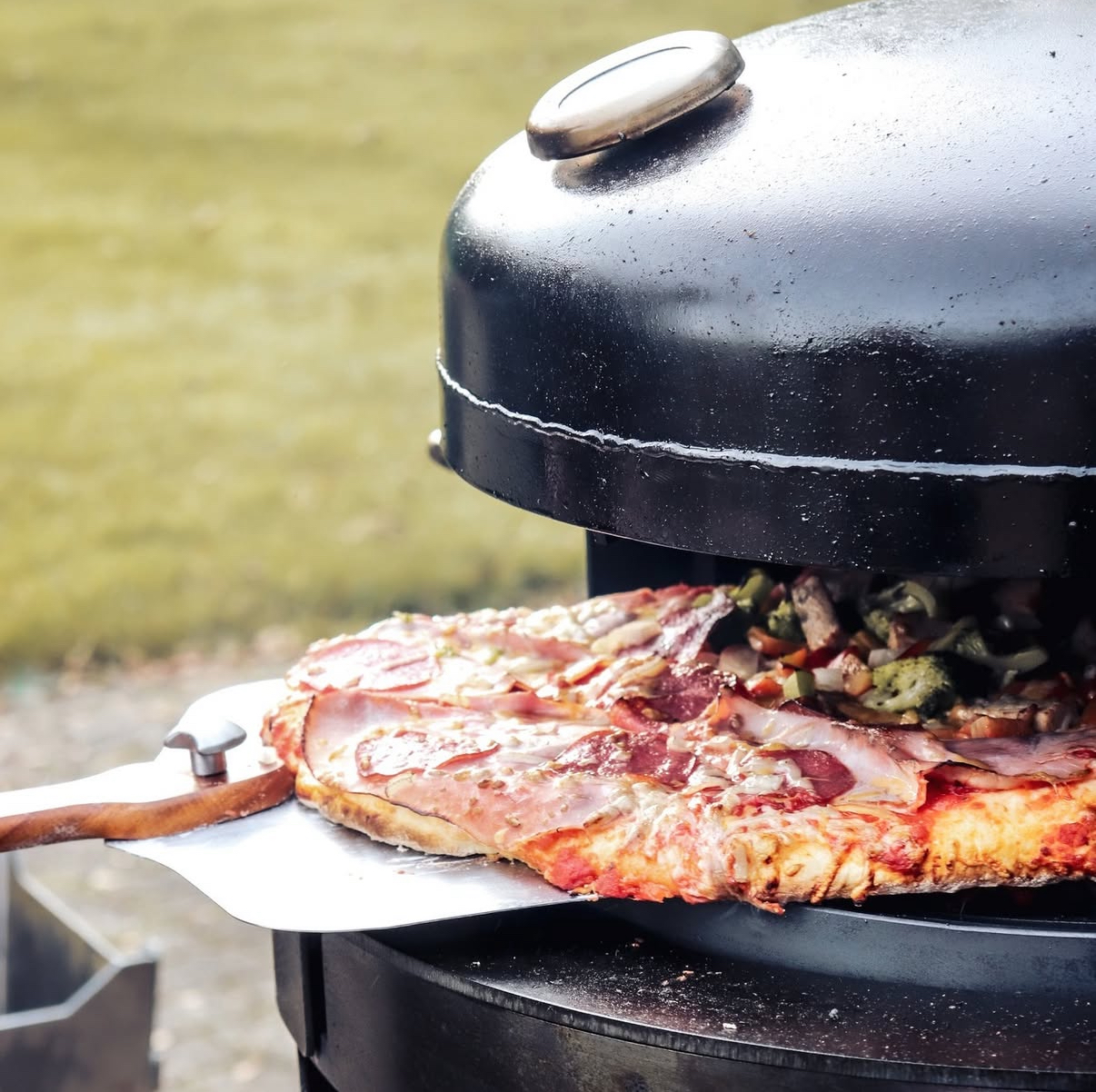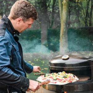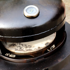 Der ganze Pizzaofen ist sehr solide in Handarbeit „Made in Garrel“ gefertigt. Der Deckel sowie die Seitenteile in 3mm Stahlblech. Die Bodenplatte sowie der Adapterring in 6mm. Somit hat er ein Gewicht von ca. 25kg.